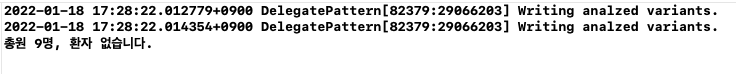 최초 팀멤버 뷰컨트롤러 화면에서 이동버튼을 누르고 소대장 뷰컨트롤러로 넘어갔다. 다음 소대장 뷰컨트롤러에서 '내 일을 대신처리해줘' 버튼을 누르고 로그를 확인해보면, 정상적으로 팀멤버뷰컨트롤러의 메서드가 실행되고 있음을 확인할 수 있다. 즉, 짬 때리는데에 성공했다!