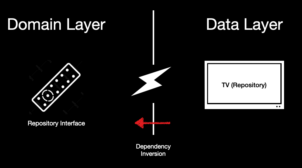 그런데 1편에서 보았던 Data의 flow를 보면 UseCase에서 Repository 쪽으로 향하고 있는 것을 확인할 수 있다. 이를 보고 의존성의 방향이 Repository쪽으로 향하고 있는 것이 아닌가라고 생각할 수 있다. 여기서는 바로 다음 설명하게될 의존성 역전(Dependency Inversion)이 일어나게 되면서 의문이 해결된다.